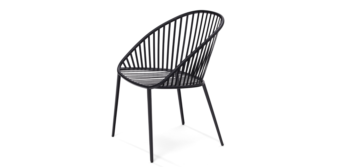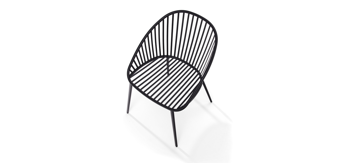 The DAN chair is now also available as an outdoor model. Flat steel metal struts ensure a robust construction, while the backrest is ergonomically curved. The padded seat cushion offers maximum comfort. The upholstery fabric and padding are water-permeable, easy to clean, and therefore ideal for outdoor use.