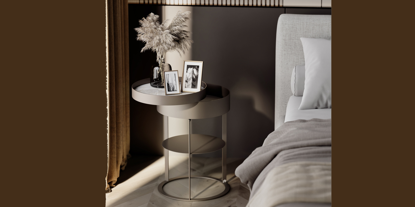 NIGHT – dieser Nachttisch mit Ablagefach hat es in sich. Ring und Unterbau in filigran anmutendem messing- oder dunkelbronze farbenem Metall sorgen für die Eleganz dieses Ensembles. Mit einer sanften Drehbewegung lässt sich das Ablagefach öffnen und bietet auf zwei Ebenen Raum für Lieblingsdinge. Die feine Kantenausbildung des Metallkorpus und die Ablageplatten in Naturstein bzw. Leder verleihen dem Tisch eine hochwertige Ausstrahlung. Eine optionale zweite Ebene sorgt für zusätzliche Ablagefläche. In zwei Höhen erhältlich ist der „NIGHT“ ein stilvoller Begleiter zu unterschiedlichen Betten.