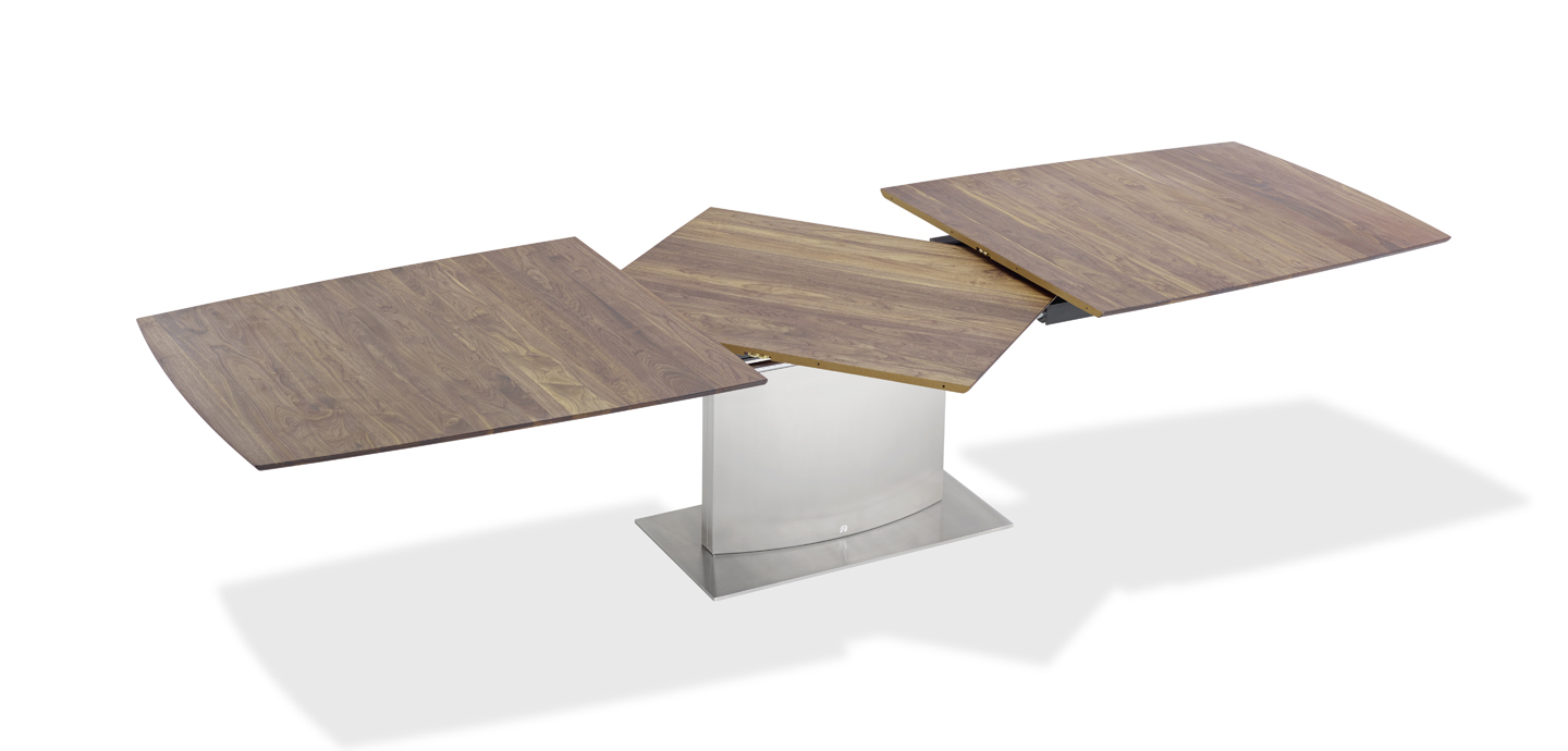 Der vergrößerbare Esstisch ADLER ist auch in der Magnum-Version in Naturstein oder Massivholz erhältlich. Diese Tafel hat ein Grundmaß von 270 cm, vergrößert 370 cm. Viele Wunschmaße sind bei der Individualisierung machbar.