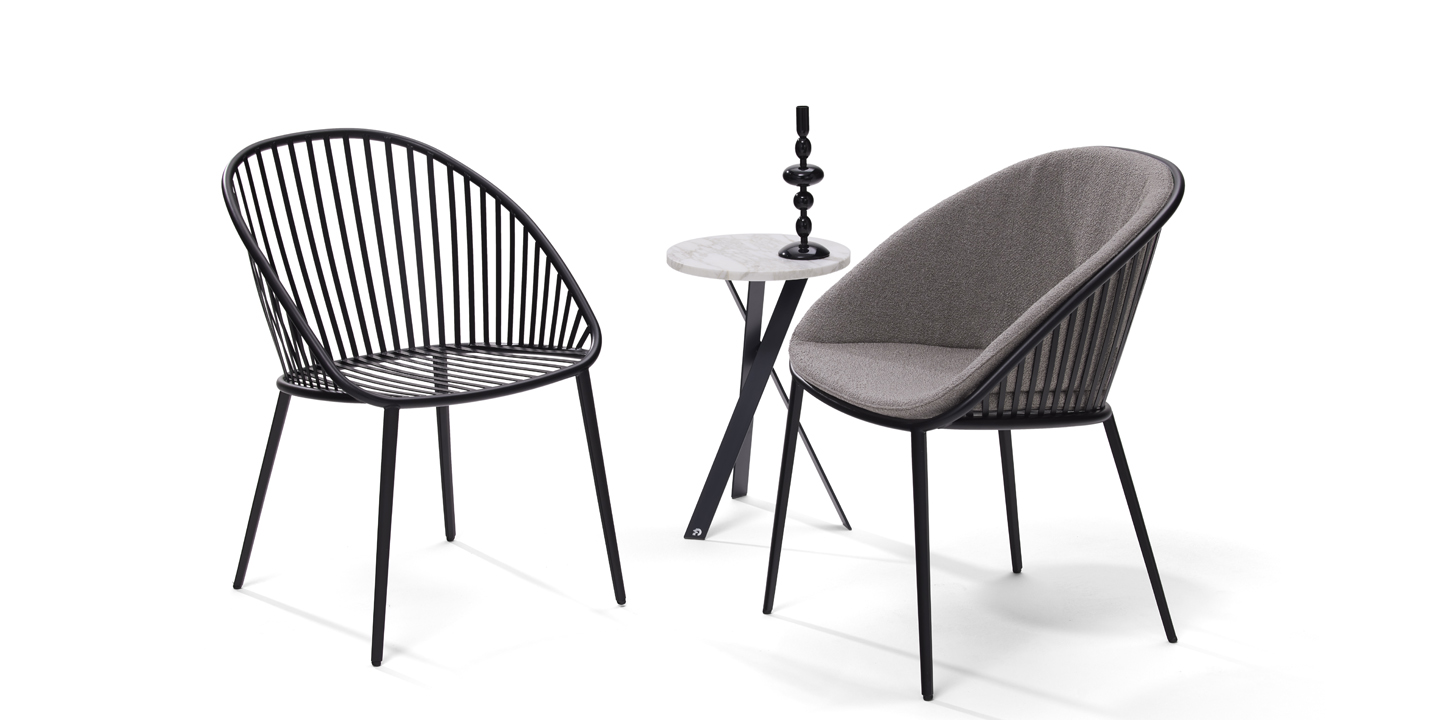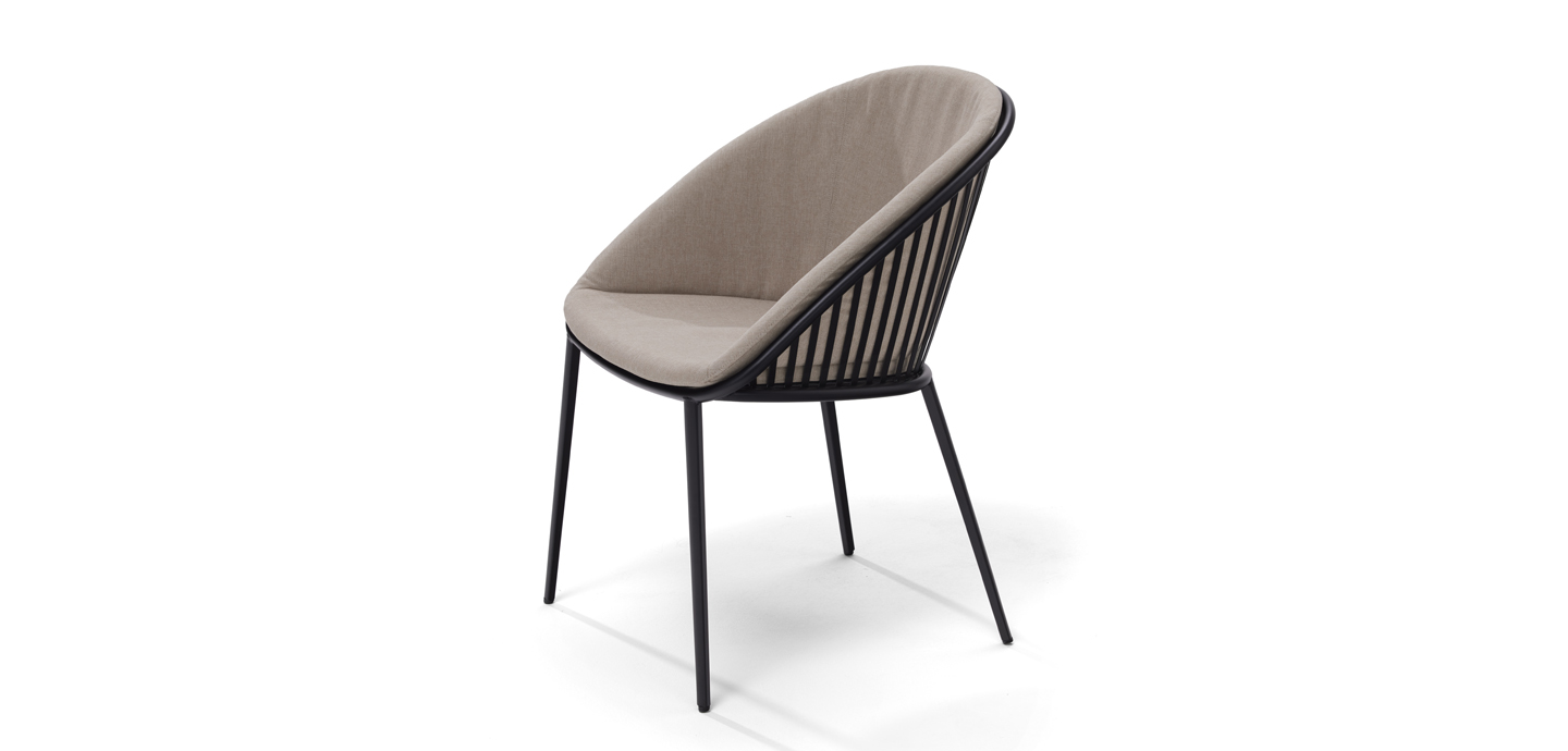 Den Stuhl DAN gibt es nun auch als Outdoor-Modell. Metallstreben aus Flachstahl sorgen für eine robuste Bauweise, während der Rücken ergonomisch gewölbt ist. Die Polsterung des eingelegten Sitzkissens bietet höchsten Komfort. Das Material des Bezugstoffes und der Polsterung ist wasserdurchlässig, leicht zu reinigen und somit ideal für Einsätze im Freien.