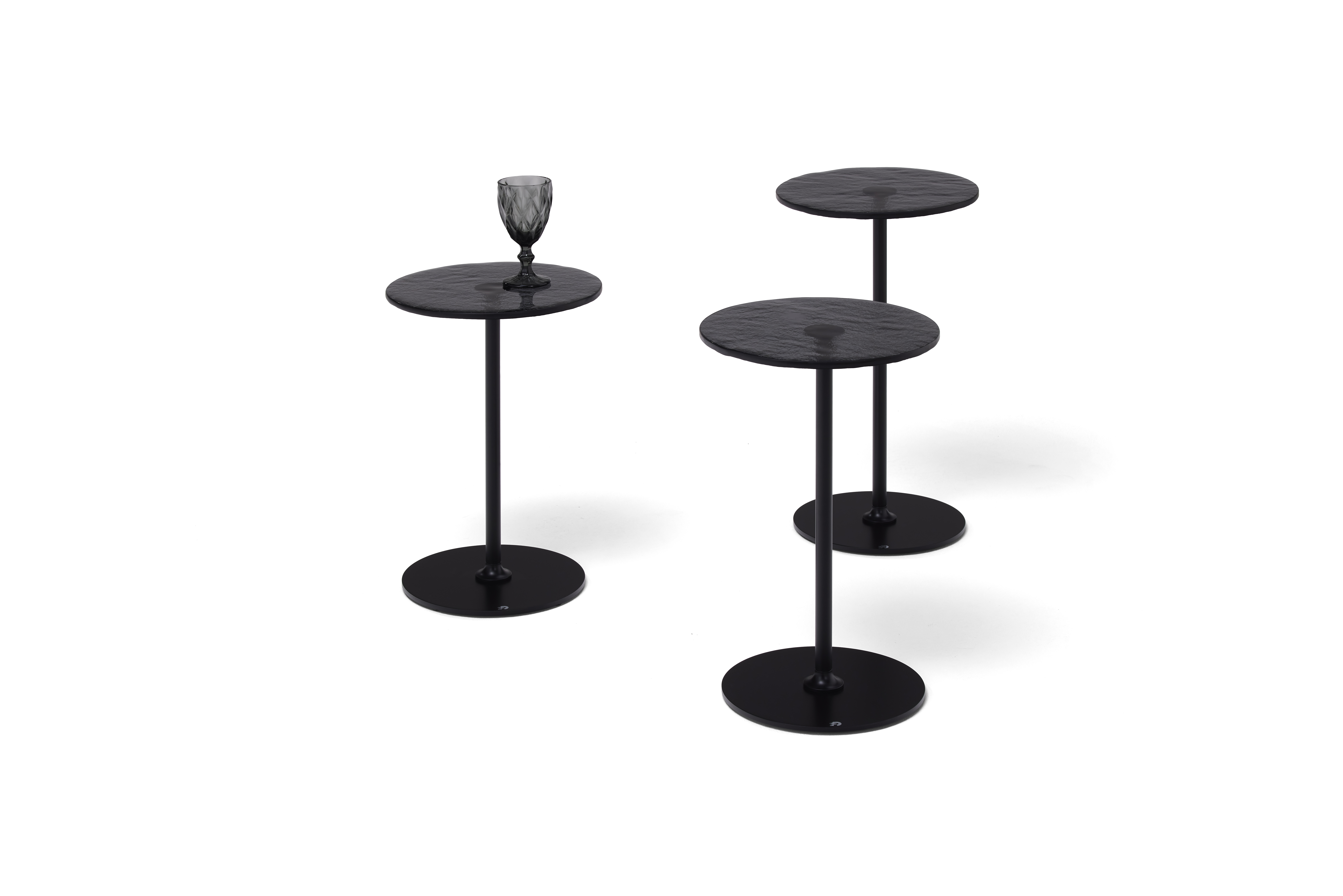 A round or oval side- or coffee table made of clear glass. The model 1010 has received numerous prizes for its harmonious proportions, its clarity and its versability. The baseplate is made of glass or steel The leg and the base are made of steel in polished chrome, matt chrome or matt nickel.